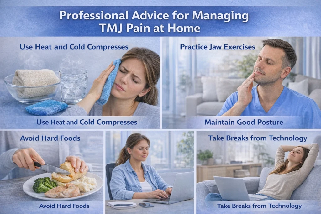 While professional TMJ treatment in Burbank, California, USA, is key to managing the issue, there are several things you can do at home to relieve discomfort and prevent the symptoms from worsening. Here are some practical tips tailored to your lifestyle: